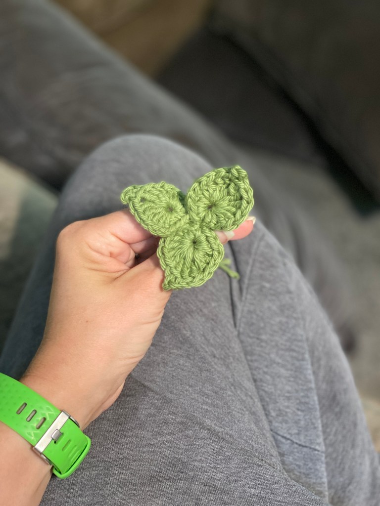 So I found the YouTube video to follow and got to work on the different parts of the project. I got to the part of the video for the leaves and thought, “Ok, you can do this!” They looked harder than other things I’ve done before so I was not sure if my skill set could pull it off. The moment I slip stitched into the other side and the leaf was officially done, I felt tears well up in my eyes. “I did that! I can’t believe I actually pulled it off!” I text my mom a picture with the text that said, “MOMMY! I MADE LEAVES!!!” I felt like a young child finally figuring out how to tie their shoes.